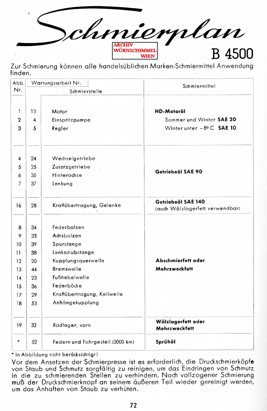 Borgward B4500 Bj. 58 Schmierplananleitung