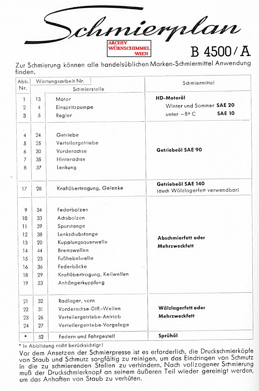 Borgward B4500/A Bj. 58 Schmierplananleitung